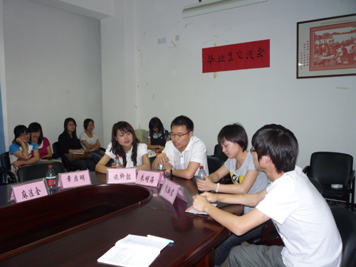 2010年6月1日晚6:30,德赢ac米兰官方合作vwin2010年毕业生交流会在1-311会议室如期举行。出席此次交流会的嘉宾有德赢ac米兰官方合作vwin辅导员麻法全老师和朱明海、朱淑君、章启明、施柳懿4位毕业生代表。