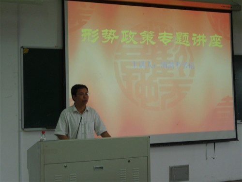 2010年5月26日下午,人文楼101教室举办了形势政策专题讲座,德赢ac米兰官方合作vwin党总支书记周剑平担任主讲人,讲座分两场进行,08、09级学生分别参与。