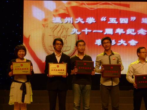 表彰大会上,德赢ac米兰官方合作vwin团委共荣获“2009年度温州市共青团工作、青年工作创新奖”、“ 德赢ac米兰官方合作vwin2009年度五四红旗团委”、“德赢ac米兰官方合作vwin2009年度校园文化建设工作优秀奖”三项荣誉称号。同时,德赢官网08历本班团支部和07广本班团支部分别荣获“德赢ac米兰官方合作vwin2009年度五四红旗团支部标兵”和“德赢ac米兰官方合作vwin2009年度五四红旗团支部”荣誉称号。晚会现场,德赢官网同学高喊“文韬武略,扬我人文”,又一次展现了德赢官网优良的精神风貌。