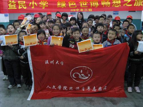 2010年4月14日下午,德赢ac米兰官方合作vwin人文思源青年志愿者协会同08中本三班的志愿者一齐来到益民民工子弟学校,开展了以“绿色世博畅想之旅”为主题的团日观摩志愿活动。