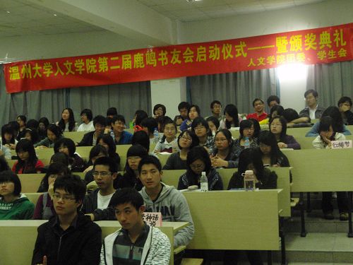 本次鹿鸣书友会启动仪式暨颁奖典礼的召开,不仅肯定了已经参加读书活动的同学们的成绩,而且也激励了更多的09级新生涉猎古今中外名著,为人文学子敞开了一个畅游书海的理想平台。