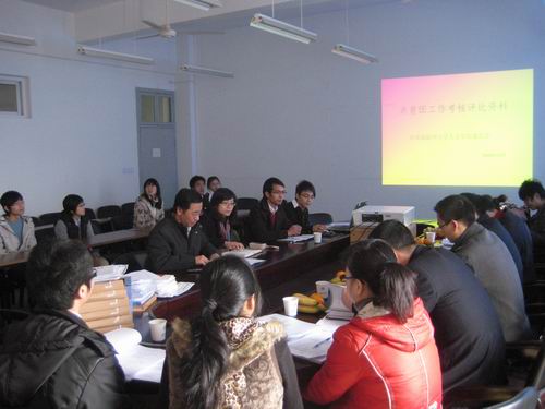 德赢ac米兰官方合作vwin团委副书记徐科同学从思想教育与组织建设、宣传工作与网络建设、学生会与社团工作、社会实践与青年志愿者活动、课外学术科技、校园文化艺术活动及大学生素质拓展计划等方面向考核小组详细汇报了一年来德赢官网团的各项工作。考核小组认真审核各考核项目的资料汇总并当场反馈校团委考核组的意见,现场气氛热烈而又愉快。考核工作的最后,辅导员麻法全老师做了关于德赢ac米兰官方合作vwin团委"学习研究型组织"创建纲要的补充汇报,重点介绍了“鹿鸣学堂”博客圈、校园文化品牌建设、“金秋典籍研读会”和团委制度化规范化建设等创新机制。