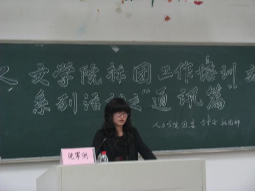 12月8日晚6点30分,由德赢ac米兰官方合作vwin学生会社团部主办的德赢ac米兰官方合作vwin社团工作培训交流活动在人文楼201教室准时举行。此次培训的主要内容是通讯写作。校新闻联合会秘书长、原《德赢ac米兰官方合作vwin报》副主编沈军洲同学应邀担任本次培训课的主讲人。