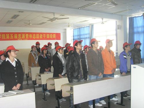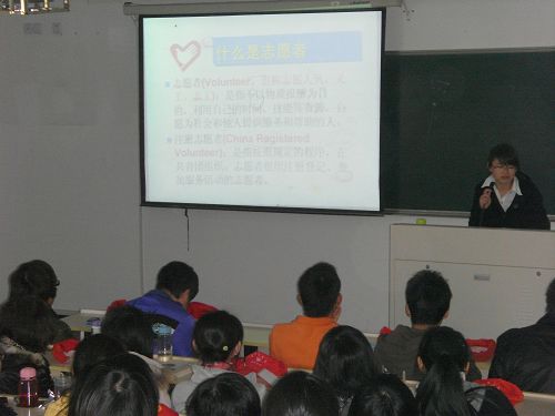 2009年12月6日上午8时30分,人文思源第五届志愿者干部培训课在人文楼202教室准时举行,德赢ac米兰官方合作vwin各班志愿者干部参加了本次的培训课程,人文思源青年志愿者协会会长彭怡欢同学作为此次培训课的主讲人。