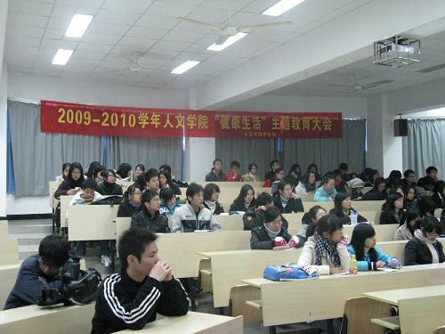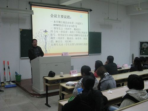 11月18日12点50分,德赢ac米兰官方合作vwin2009--2010学年“健康生活”主题教育大会在北校区人文楼203教室准时开始。德赢ac米兰官方合作vwin党总支书记周剑平老师、党总支副书记魏成春老师、教学科科长杨秀华老师、学生科副科长曾蓓蕾老师、辅导员麻法全老师、刘纪峰老师、冯建军老师列席。大会由冯建军老师主持。