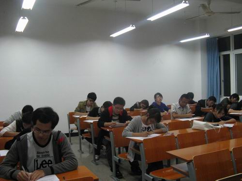 本次考试由主席团命题,辅导员麻法全老师负责审查和修改,根据干事、负责人的不同工作情况和工作性质分试卷进行测试。大一的测试内容主要由两部分构成--团学相关知识考核以及个人工作感想。前者包括团学服务宗旨、各部门主要负责人姓名、各部门工作内容等,后者则要求考生结合两个月来的工作经历,谈一谈自我感受及对团学的建议和看法。大二负责人的测试内容则注重管理和沟通联系方面,主要包括部门建设、心得体会和对学生会今后发展的意见建议等。测试题目范围广阔,答案自由,旨在开阔思维,畅所欲言,真正实现学生干部与主席团、老师之间的沟通交流。直到八点,考试准时结束,负责监考的主席团成员宣布收卷并作简要评述。