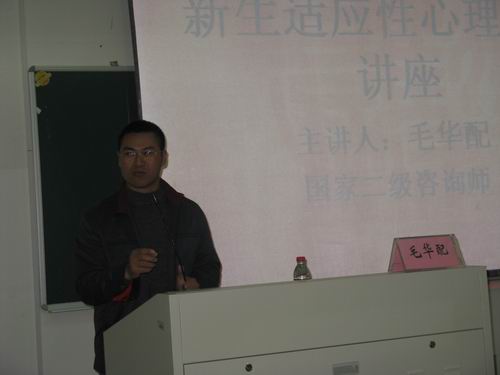 11日4日13:30,德赢ac米兰官方合作vwin新生适应性心理健康讲座在北校区人文楼203教室举行,担任主讲的是国家二级咨询师毛华配老师。