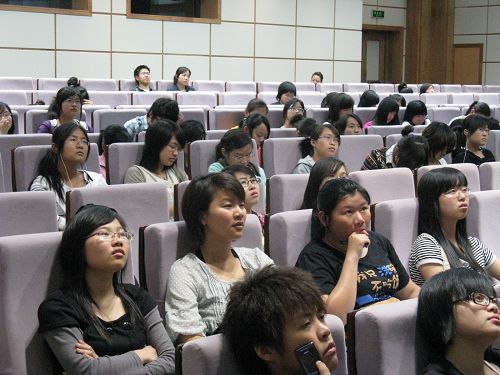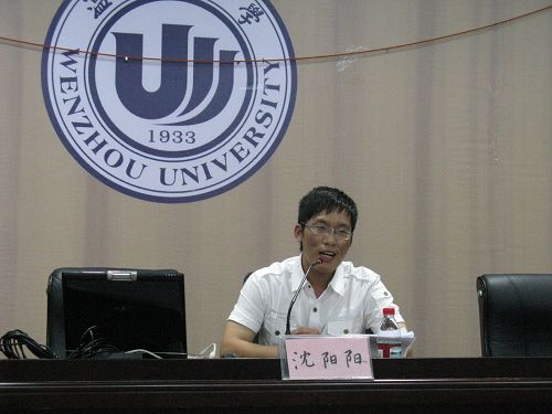 18:30,以“两岸三地的汉字状况看繁简字”为主题的讲座正式开始。首先,沈阳阳同学以当下文化界的热点问题--恢复繁体字的提议,引出话题,讲解了表意文字与表音文字的区别,并让同学们了解了汉字难学的原因包括汉字形体至今尚未完全统一等。接着,他以小篆简化到隶书为例,讲到了隶草之所以为官方所承认,是因为当时战争的需要,传递信息的需要以及社会的需要。当然,汉字简化并不是随心所欲的,而是遵循着一定的潜规则--"形不离骸"进行的,即在将汉字简化时,必须保留其一定的外形。简化的汉字首先在大陆开始被自上而下地推广和使用,而在香港和台湾则发展缓慢。甚至,台湾的简体字还是受到日本文化的影响才被广泛使用的。最后,针对文化界的热点话题,他认为“承繁推简”是时代精英的文化责任,但并不赞同恢复繁体字,因为这有悖于社会以及教育的需要。同学们都聚精会神地听着,现场充裕着浓浓的学术氛围。精彩的讲座在麻老师精辟的总结性发言中完满结束。