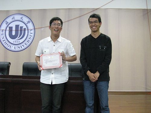 由共青团德赢ac米兰官方合作vwin委员会、德赢ac米兰官方合作vwin主办的第七届百年语文系列活动之“鹿鸣讲坛”经过预赛,从来自德赢ac米兰官方合作vwin、商学院、数学学院等学院的八组优秀讲座方案中筛选出了一组最佳方案,并于2009年5月18日在北校信息楼报告厅正式开坛讲座。活动开始之前,德赢ac米兰官方合作vwin辅导员麻法全老师为本次讲座的主讲人——来自08中本二班的大一新生沈阳阳颁发了“德赢ac米兰官方合作vwin第七届百年语文之鹿鸣讲坛特邀客座讲师(学生)”的聘书,德赢ac米兰官方合作vwin叶建军副教授作为其指导老师也出席了本次讲座。