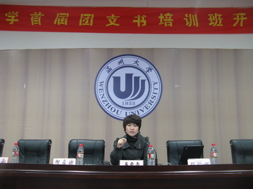 第一个活动就是理论讲座。首先,学生代表、本次培训班班主任程雨珊同学及纪律委员先后发言,讲解了有关本次培训班的纪律等相关内容。接着,屠老师讲到开本次培训班的原因及重要性,并且强调了团支书及团支书工作的重要性。屠老师还提到了团日活动的重要性即加强团的思想建设并从实践中教育团员青年、引导团员青年。屠老师指出团日活动还存在的一些问题,包括团组织凝聚力不够等。她还强调要注重学生自身特点,结合校园、社会热点来开展富有特色的团日活动,增强青年的团员意识,培养团员的组织、合作能力,并坚持目的性和方向性等原则,不搞形式主义,将活动开展得更好。