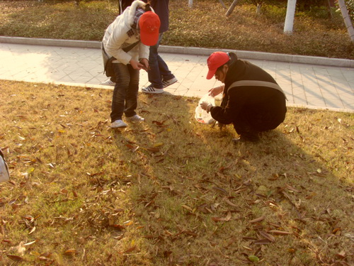 2008年12月15日,德赢ac米兰官方合作vwin思源青年志愿者协会开展了一次捡拾树叶的活动。