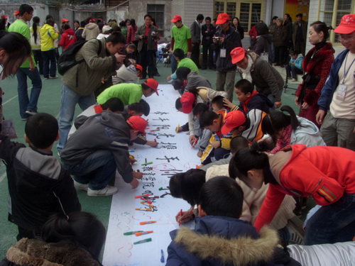 新码道学校是一所专为智障儿童设立的学校,可以说那里的孩子更需要社会的关心。12月3日是世界残疾人日,为了给那些孩子带去欢乐,让他们体会到社会的关爱,人文“思源”青年志愿者们在新码道组织了一次联欢会。参加本次活动的嘉宾有市残联领导戴美玲、新码道小学校长、各赞助企业代表、德赢ac米兰官方合作vwin团委副书记朱晓雨等。联欢会开幕式上新码道学校的校长作了讲话,对志愿者和社会热心人士表示了欢迎和感谢。德赢ac米兰官方合作vwin代表团委学生会副主席朱晓雨也希望和新码道学校的友谊长存。开幕式结束后两个学院的志愿者表演了唱歌、书法、朗诵、手语等节目,新码道的孩子们也为志愿者表演了唱歌节目。同时联欢会上还进行了画笑脸的游戏,孩子们在志愿者的帮助下在白布上留下了一张又一张的笑脸,各位热情高涨,将联欢会推向了高潮。