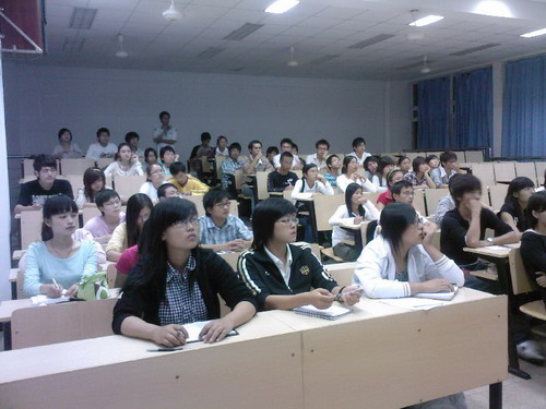 接着,施柳懿同学以"盲人摸象"为切入点,为同学们讲解了校园新闻写作。她主要介绍了宣传的途径、形式以及新闻的定义、类别等,并着重介绍了消息、通讯的写作方法及特点、注意事项。两位主讲人生动的讲解、典型的题材,让同学们受益良多,同学们都认真地听讲,摘录笔记。