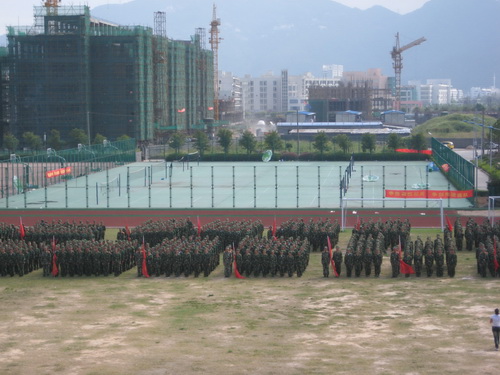 从9月22日至9月28日,08级新生进行经为期一周的军训。在这一周的日子里,同学们经历了风雨与阳光的洗礼,有过笑有过泪,磨练了自己的身心!在这一周的日子里,从祖国四方聚集在一起的同学们,同甘共苦,从陌生到相识,从战友到朋友。在这一周的日子里,同学们经历了不一样的生活,体验到了作为一名人民解放军的光荣与艰辛,切身体会到了军人的威严气度与军队的严谨作风!