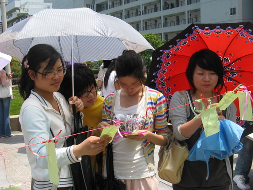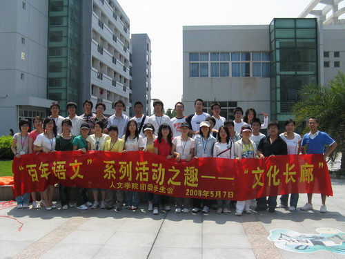 5月7日下午12:00左右,"百年语文"系列活动之"趣--文化长廊"活动在温大生活园区C区中心花园展开。天气十分炎热,但同学们参加活动的热情丝毫没有受到影响,活动现场十分热闹。