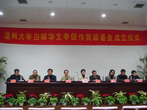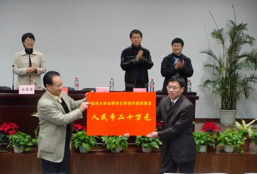 2007年12月19日下午,德赢ac米兰官方合作vwin白晖华文学创作奖励基金成立仪式在北校区信息楼报告厅隆重举行。