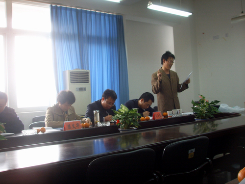 下午三点,活动准时开始。主持人将本次班会的相关内容作了介绍后,就直奔主题,进入了紧张的学风建设及迎评促建知识问答,问答分必答题和抢答题答,06中本一班全体同学以寝室为单位分为八个小组进行比赛。必答题中,同学们表现出色,答题完毕后由李益明主任为各队作了详细的点评和补充,使同学们懂得了更多关于迎评的知识;抢答环节中,同学们积极抢题,气氛甚是热烈。最后一个环节,也是最重要的一个环节——“我为‘三风’建设提建议”的主题演讲中,各组派代表对于学风建设提出了许多具有建设性、可行性的建议,陈艾华书记、李益明主任和周剑平书记对同学们的建议颇为赞赏,并分别做了认真的点评。最后,评委团宣布了本次知识竞答的结果,并为获奖队伍颁奖。