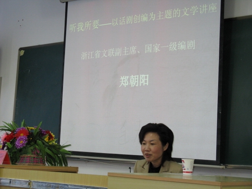 11月21日下午2点30分,继德赢ac米兰官方合作vwin校园话剧节开幕式后,我们迎来了以“话剧在中国”为主题的文学讲座。此次讲座,德赢ac米兰官方合作vwin有幸邀请到国家一级编剧、浙江省文联副主席郑朝阳老师来为我们高教园区的学子们主讲。在北校区人文楼201教室,同学们准时赴场,座无虚席。