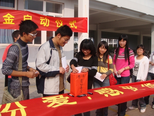 李浦豪老师首先讲话,他结合实际着重强调了建立爱心基金的重要性并且预祝思源爱心基金启动仪式取得圆满成功。随后,团委副书记余斌、人文思源青年志愿者协会代表及青年志愿者代表分别发言。爱心基金,就是捐献自己的爱心,融入他人的学习、生活,感受爱充满人间的温暖,聆听爱洒满人心的天籁。接着,各位代表将首笔爱心捐款投进集零箱,并在印有启动仪式的横幅上签字,表达了大家对基金的支持和对爱心基金美好未来的祝愿。将近一个小时的启动仪式宣告了人文思源爱心基金正式成立,从此以后德赢ac米兰官方合作vwin青协将以更加有效的方式和途径帮助那些需要帮助的人,希望爱心基金能以此刻为起点,通过所有志愿者的共同努力,使思源爱心基金从小到大,逐步成熟,真正发挥思源爱心基金的作用,相信明天会更好!