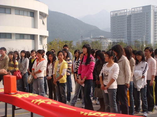11月14日下午,德赢ac米兰官方合作vwin思源青年志愿者协会思源爱心基金启动仪式在一号楼前广场隆重举行。德赢ac米兰官方合作vwin的学生科科长李浦豪老师、辅导员曾蓓蕾老师、德赢ac米兰官方合作vwin团委副书记余斌、学生会主席卢浩亮及各班团支书、青年志愿者代表共同参加了此次的基金启动仪式。
