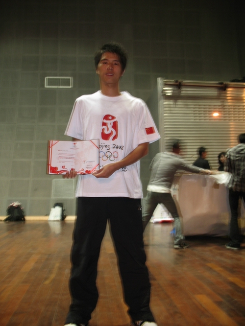 当晚,在杭州师范大学进行的浙江赛区总决赛中,德赢官网陈斌同学在参赛宣言、奥林匹克知识抢答、参与奥运小游戏、奥运创意大比拼、为奥运献礼等环节中充分展现了个人风采,凭借其在科技奥运、人文奥运、绿色奥运领域所作出的努力和成就,以及他对奥林匹克精神深刻的理解,震撼并感染了到场的每一位观众。最终经过评委认真、严格的评选,与其他7名精英一起脱颖而出,荣获“联想中国高校08奥运火炬护跑手”资格。