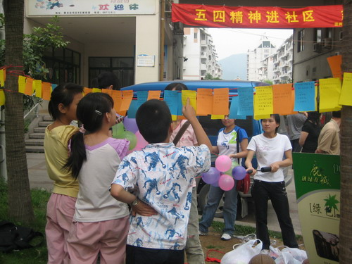 上午9点30分,志愿者们在康园社区的草坪上展开了五四知识竞赛。社区的爷爷、奶奶、叔叔、阿姨和小朋友都积极地参加了此竞赛并赢得了丰厚的奖品。下午1点30分准时开展了另一活动,其中包括游戏和嘉宾表演。背夹球跑,妙语猜心等游戏引起了许多小朋友的兴趣。游戏之后是表演,德赢ac米兰官方合作vwin的志愿者和康园市民学校艺术部的小朋友热情地参加了这次表演。值得一提的是康园市民学校艺术部的小朋友们,她们的歌舞表演异常精彩,让观众们大饱眼福和耳福,毫不吝啬的给予了阵阵掌声。中间穿插着观众和表演者的互动游戏,让此次表演的气氛直线高涨。