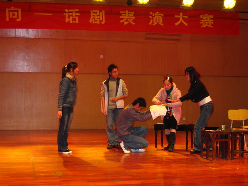 周六上午8点,由德赢ac米兰官方合作vwin06中本4班带来的《盲点?亮点!》准时为预赛拉开了序幕。令人炫目的舞台灯光,动人心弦的话剧情节,深情投入的演员,无不让观众沉浸其中。至周日下午4点半,教育学院、瓯江学院、商学院、栖风文学社等12个学院、2个社团选送的33个表演剧目全部表演完毕,农历剧社排演的以真情实感而博得全场喝彩的《父与子》以85分的高分成为全场之冠。最后,音乐学院选送的《你的帽子真好看》等12个剧目顺利进入决赛。