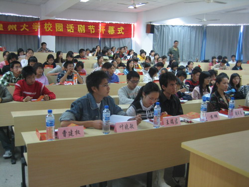 畅想青春的旋律,演绎人生的魅力。德赢ac米兰官方合作vwin首届社团文化节之第五届话剧节开幕式于2006年11月15日下午1点在北校区2-203举行,德赢ac米兰官方合作vwin党总支副书记魏成春老师,团委吴莉娜老师,德赢ac米兰官方合作vwin辅导员曾蓓蕾老师等出席了此次开幕式。