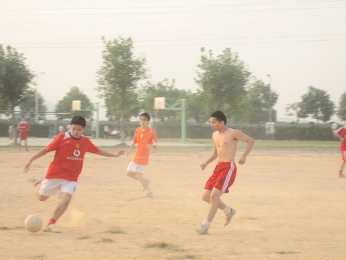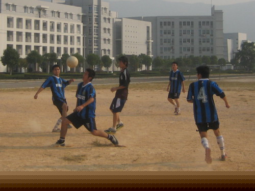 2006年11月11日下午,在北校区的煤渣球场上,一场以大一与大二足球健儿为主角的足球赛逐渐拉开了序幕。随着一声哨响,比赛开始了。只见队员们精神抖擞,为整场比赛涂上了一层运动的色彩。2点左右,大一的一名运动员在球场中央开球,而后上演了一场众人对足球的争夺战。在混乱中,大二队16号钱锋奋力杀出,截住球,绕过众多障碍,干脆的踢出定全局的一球。进球得分,场上一片掌声!在此之后,场上的气氛愈加紧张,双方的实力相当,直至中场休息,都未得分。2点40分,下半场开始。值得注意的是,下半场双方虽都未进球得分,但在这场没有战火与硝烟的战争中,比赛的激烈足以让人折服!大约3点分左右的一次危险进攻成为下半场的看点。大二的一球员从队员脚中接过球,带球前进几步,在几秒之内猛的一球,这时迟那时快,对手突然杀出,截住了球。球在空中旋转后落地出界,足见这一球所凝聚的力量和技巧!3点10分整,球赛在一声哨响中画上了句号。大二以1:0险胜大一。赛后,大二的球员王欣笑着说:“这场比赛让人很兴奋!”的确,这是一场凝聚着友谊与球技对抗的球赛!