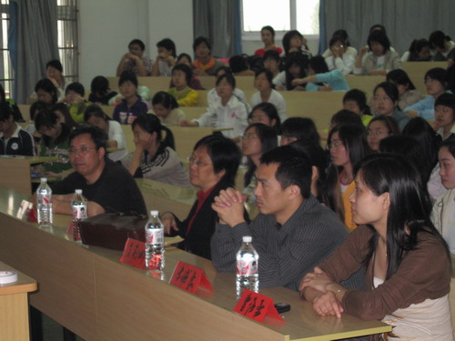 接着校团委主管社团工作的吴莉娜老师分别向协会专业指导老师邱国珍老师、思政指导老师曾蓓蕾老师颁发聘书,这标志着刚刚成立的民俗协会从此正式有了强有力的专业技术指导与思想政治引导的保证。会上,指导老师邱国珍教授当场表态在社团成立之初条件有限的情况下将为广大会员提供无偿讲座并安排其他活动。她的讲话博得了会员的阵阵热烈掌声。最后协会各部门负责同学向大家介绍了各自部门的工作分工及第一届理事名单。