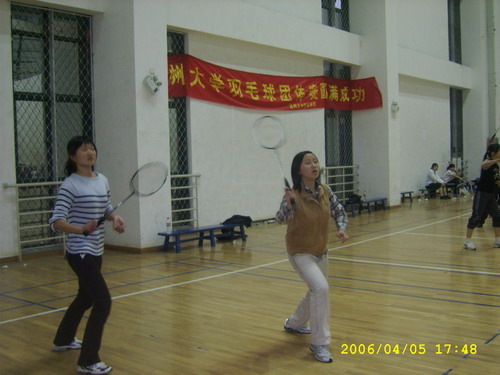 2006年4月5日,在德赢ac米兰官方合作vwin北校区体育馆排球馆内举行了德赢ac米兰官方合作vwin羽毛球团体赛。比赛在下午达到了当天最高潮,在数个场地上同时进行比赛。比赛囊括了男单、女单、男双、女双、混双五个项目,由各个学院派出一支代表队参加。德赢ac米兰官方合作vwin代表队和外国语学院代表队的比赛原定于15:30在一号场地开始,后因故推迟,并换到二号场地进行。继第一场男单比赛05历本的陈钢同学以压倒性的胜利旗开得胜后,04中本二的邱晔同学又以绝对优势拿下女单比赛。