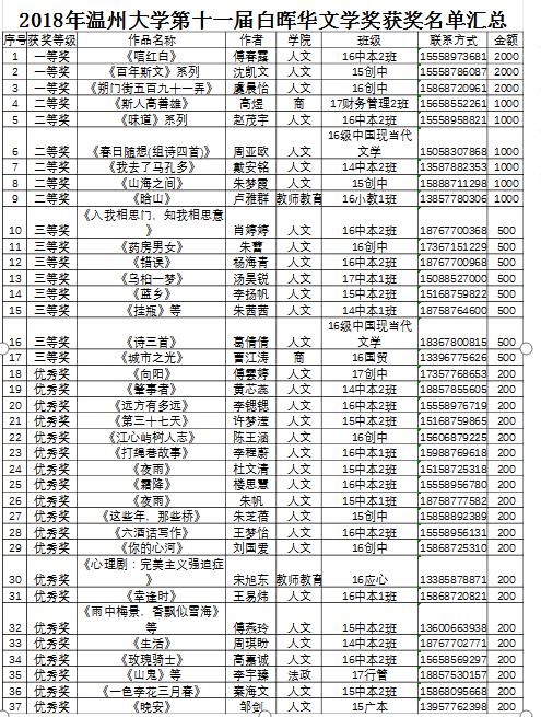 为进一步丰富校园文化,弘扬人文精神,鼓励广大同学进行文学创作,提高学生的文学素养,德赢官网举办了第十一届德赢ac米兰官方合作vwin“白晖华”文学奖的评选活动。本次白晖华文学奖征集到来自13个学院共551份作品,经初审、复审和终审,共评出包括傅春露的《唁红白》等在内共37份优秀作品。现将获奖作品公布如下: