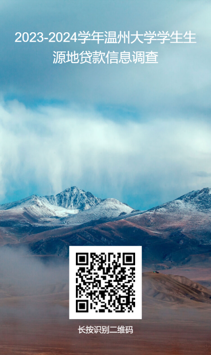 根据国家开发银行生源地信用助学贷款手续办理的要求,学生在生源地办理完毕信用助学贷款后,需要高校在限定时间内进行网上回执录入,请办理国开行生源地贷款的新老生,务必在9月20日前在网上完成《2023-2024学年德赢ac米兰官方合作vwin学生生源地贷款信息调查》的填写,二维码如下: