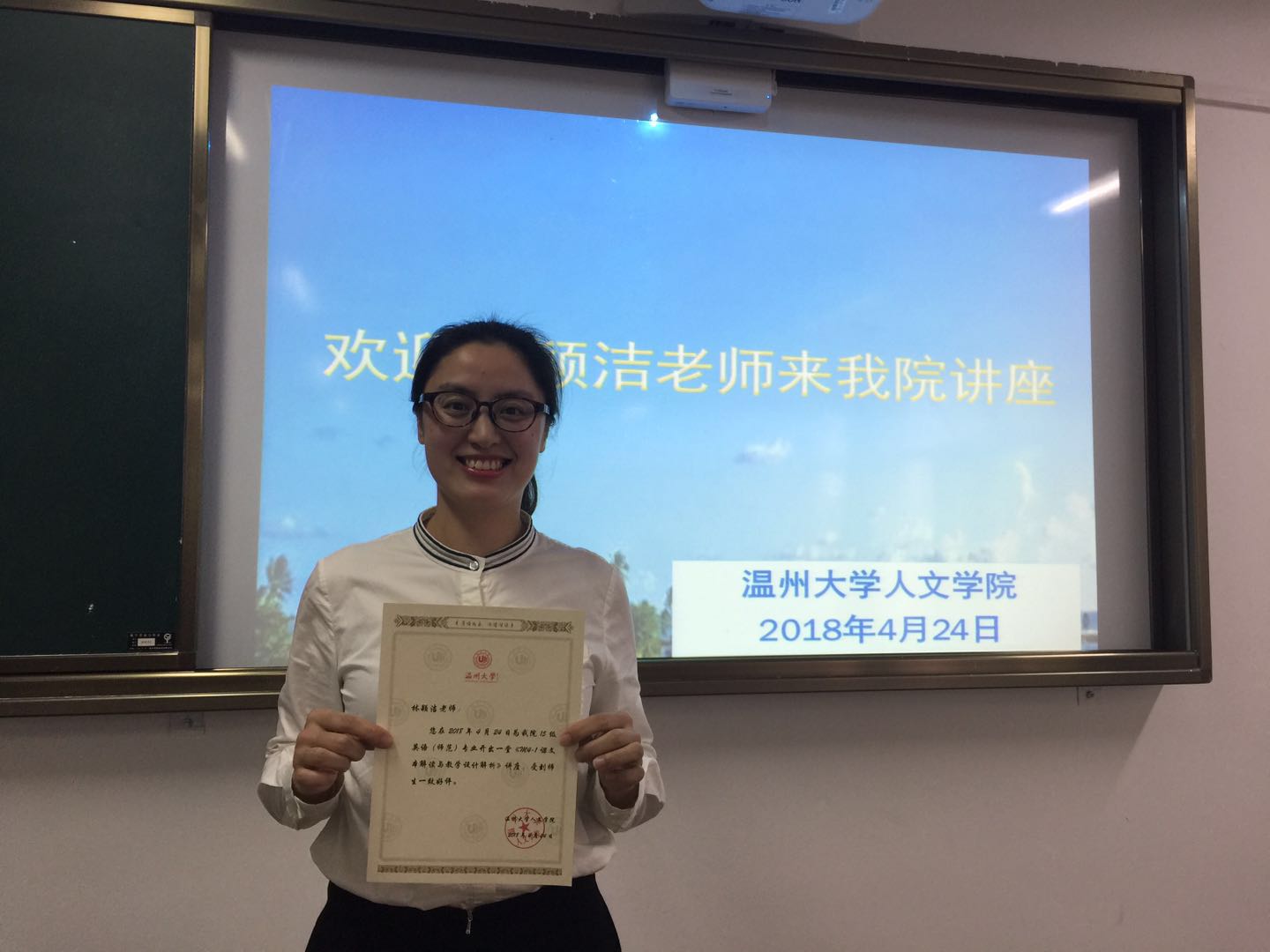首先,温州仙岩中学的邹丽娟系统地向同学们展示了如何根据不同的教学维度对教学活动进行观察和评价,指导同学们要从教育本身出发,从学生需求出发,从课标出发进行教学。下午,来自温州外国语学校的林颖洁老师为大家带来“外研社M4U1课文本解读与教学材料分析”的讲座。林老师激情澎湃的讲话,把今天的讲座推向了高潮,让同学们深刻地感受到了培养思维品质在英语教学中的重要性。