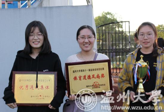 烈日在秋风的轻抚下散发柔暖的光亮,徐徐映照在操场上德赢官网学子隐含期待的面庞上。在各学院有序入场后,裁判员代表宣布了团体总分排名、体育道德风尚奖、优秀组织奖、优秀通讯奖及优秀裁判员名单。值得欣喜的是,德赢官网在此次运动会上荣获学生甲组女子团体总分第七名,体育道德风尚奖。另外,在全院同学的踊跃投稿下,德赢官网还喜获优秀通讯奖。在场的同学们欢呼跳跃,喜不自胜。