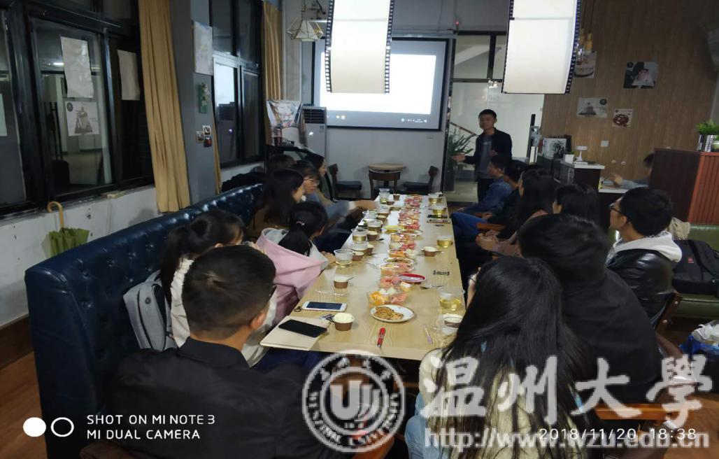 2018年11月20日晚,德赢官网“星火·薪传”党员志愿服务中心之国学传播社于“兆文智创”创客空间举办了题为“美味共品尝,文化相与析”的国学沙龙活动。本次活动由德赢官网国学社负责人倪晋玉同学宣讲,德赢官网部分研究生参与。