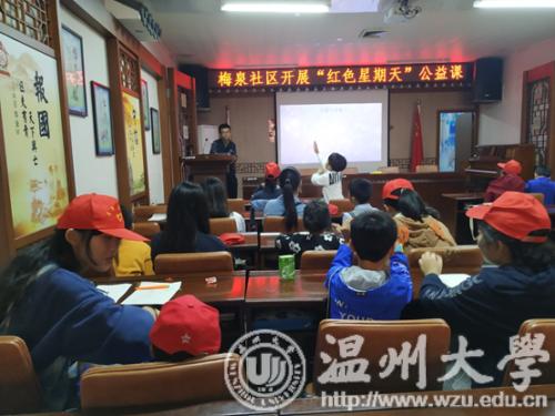 活动前期,青协干事与梅泉社区负责人联系,确定周日活动人数,然后根据需要招募主讲人和一定数量的普通志愿者。活动当天,青协干事带领志愿者们于8:15到达活动场地,准备ppt放映,同时也等待与学生们的再次见面。8:30,第一节课准时开始,主讲人这次为小朋友们带来的是关于浩瀚宇宙的知识。主讲人图文并茂地介绍太阳系的八大行星,从位置到体积,从外形到周期,小朋友们受益匪浅。第二位主讲人介绍了星座的知识,还分享了潘多拉魔盒、普罗米修斯盗火等故事。9:50第二节课开始,这节课,志愿者为学生复习上一节课的知识,巩固记忆,同时,也辅导学生完成部分周末作业。