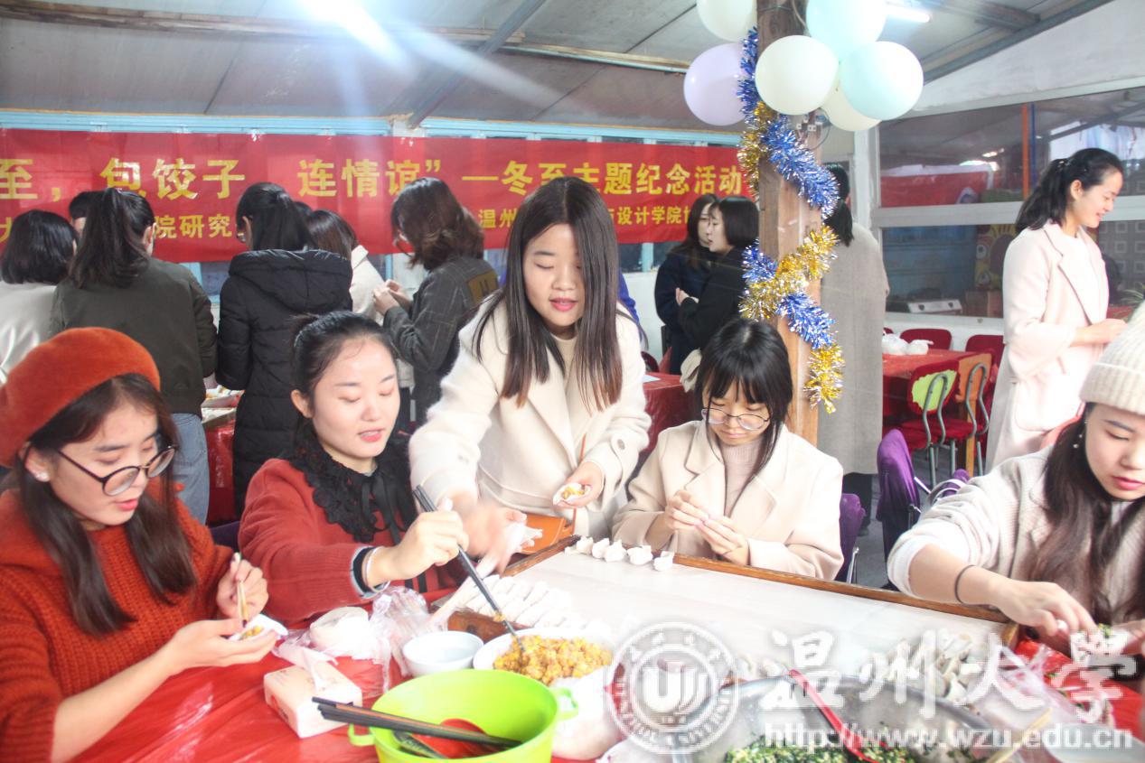 为了传承中华传统习俗,丰富研究生的校园生活,德赢官网研究生会于2018年12月22日在云平农家乐举办了以“庆冬至,包饺子,连情谊”为主题的纪念活动。此次活动由德赢官网研究生会主办,美术学院研究生会协办,共有八十余位来自各个学院的研究生参加。其中包括德赢官网研究生会成员、第一、第二党支部成员、美术学院研究生会成员以及慕名而来的意大利、捷克留学生。