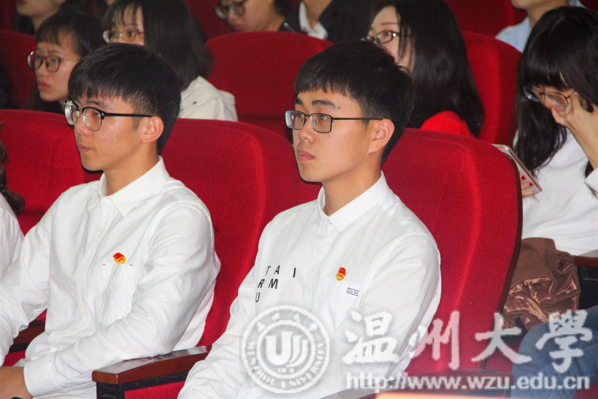 活动伊始,全体起立,奏唱共青团团歌。在激情洋溢的团歌之后,党员代表李林军同学回顾五四历史、传承五四精神,从自身经历出发,跟同学们分享如何从一名团员成长为一名党员的历程。在全体人员重温入团誓词与入党誓词后,集体观看纪念五四运动100周年大会,一起感受那永不衰竭的五四精神。会上,习近平总书记对广大青年寄予厚望:“新时代中国青年要继续发扬五四精神,以实现中华民族伟大复兴为己任,不辜负党的期望、人民期待、民族重托,不辜负我们这个伟大时代。”