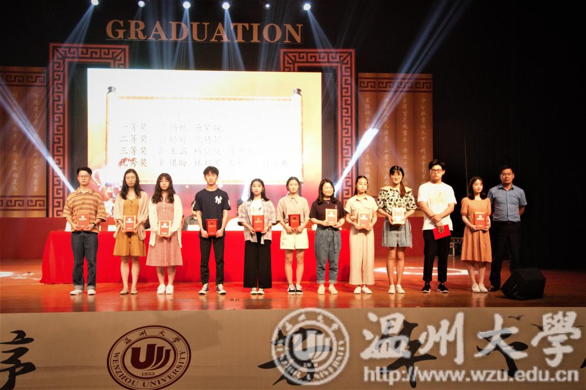 2019年6月17日晚,德赢官网于育英大礼堂举行了2019届毕业典礼暨毕业生欢送会。出席本次晚会的嘉宾有德赢官网院长孙良好,党委书记吴静,副院长毛继光、朱晓申、刘建国、席留生、郑春生以及毕业班班主任、辅导员和全体毕业生。 首先,在庄重的国歌声中,首先举行的是毕业生典礼。孙良好院长语在毕业致辞中告诉毕业生们,不管是读书还是工作,最重要的是“认识你自己”,无论生活多么繁忙也要坚持读书,因为读到深处便是读自己。接下来是毕业生班主任代表蒋述老师发言,她带着毕业生们将大学生活再次回味了一遍,并告诉他们:“常回家看看!”之后,毕业生代表屠婧斓表达了对母校的不舍同时也做了对未来的美好憧憬。在颁奖环节里,老师们对获得国家奖学金获得者、浙江省优秀毕业生获得者、学校优秀毕业生获得者、陈志远写作奖获得者以及考上研究生的同学进行颁奖和表彰。