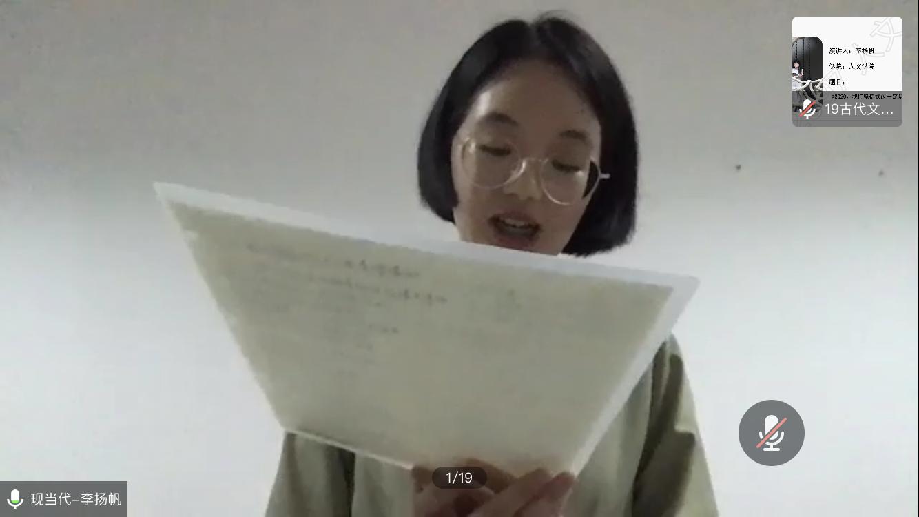 开场德赢ac米兰官方合作vwin刘砚秋带来的《你的眼睛》因为精心的服装和道具准备很快吸引了大家的注意,大家仿佛被带到了紧张的抗疫现场,护目镜之下有疲惫,但更多的是对战胜疫情的期盼。生环学院赵祎带来的《最美逆行者》深情表达了对抗疫工作者的敬佩和感谢。教育学院章丽君的一篇《因为有你》以其清晰的吐字,优秀的技巧赢得了老师同学的一致好评。德赢ac米兰官方合作vwin王媛媛和陈雅利分别带来了《等待春天》和《春雨徘徊》,温情款款、如沐春风,希望就在前方,守得云开见月明。数理学院傅天添铿锵有力地配合着激扬的背景音乐带来了一首《军令如山》,给大家巨大的鼓舞。德赢ac米兰官方合作vwin陈赛君《请记住那些护住武汉伤口的人》、教育学院徐佳艳《抗击疫情 我们始终在一起》一起带来精彩的朗诵表演。上半场结束后,德赢ac米兰官方合作vwin的郭垚老师进行了点评,她首先肯定了同学们的用心准备,其次根据每位同学的表现一针见血地提出了几点问题,她表示大家普遍存在的问题是朗诵的节奏没有具体的起伏变化,大家需要根据不同朗诵稿的内涵找准朗诵的情感节奏。
