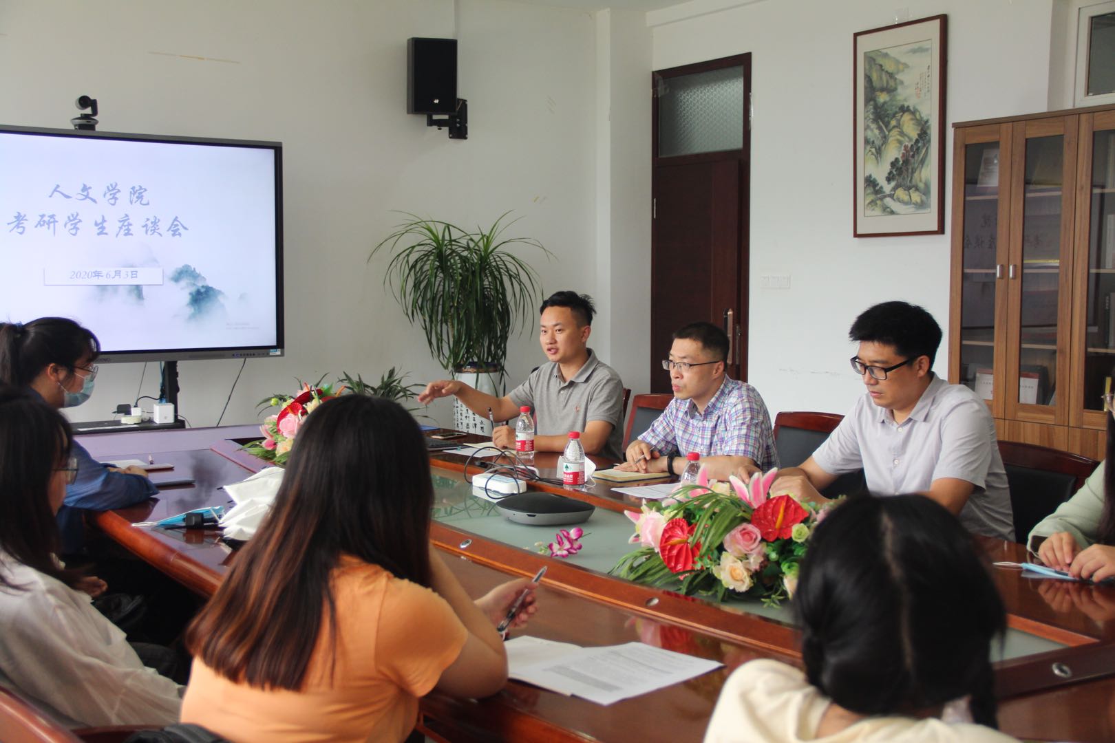 为了更好地服务和帮助德赢官网学子攻克考研,顺利上岸。德赢官网于2020年6月3日,在德赢ac米兰官方合作vwin人文楼213会议室召开了考研座谈会。院党委副书记魏一老师、学工办主任刘纪峰老师、学工办辅导员申业磊老师出席了此次座谈会。同时,选择考研的20余位同学参加了此次会议。