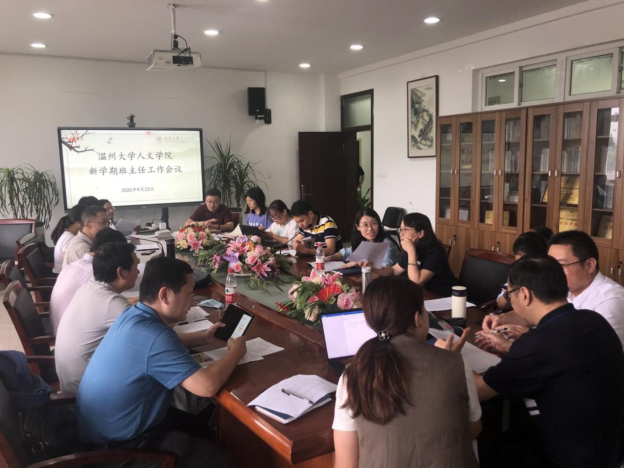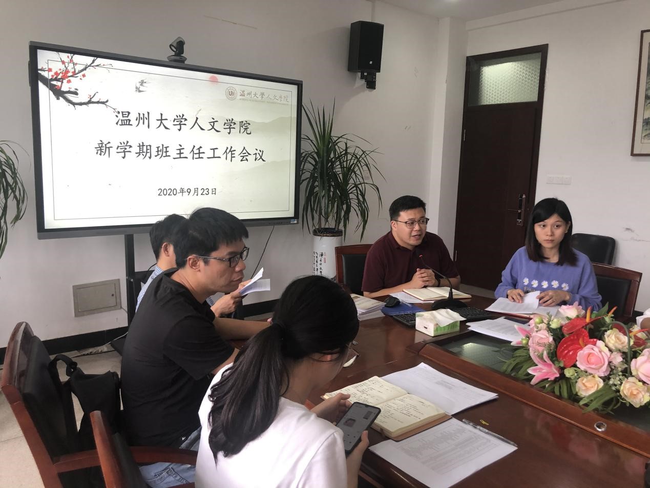 2020年9月23日下午,德赢官网在人文楼213会议室召开了本学期的新学期班主任工作会议。德赢ac米兰官方合作vwin党委副书记魏一、学工办辅导员胡震鹏、申业磊、李丹萍、张丹妮及各班级班主任出席此次会议。