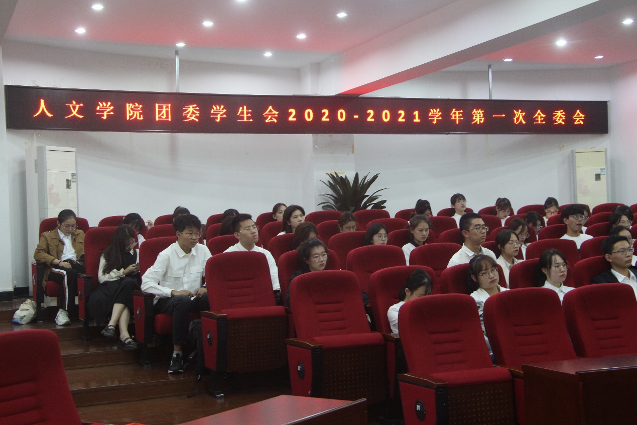 10月21日下午,德赢官网团委·学生会2020-2021学年第一学期第一次全体委员会召开在人文楼203报告厅举行。院党委副书记魏一、学工办辅导员胡震鹏张丹妮、周怡谷,德赢官网团学新一届主席团以及全体团委·学生会成员出席会议。