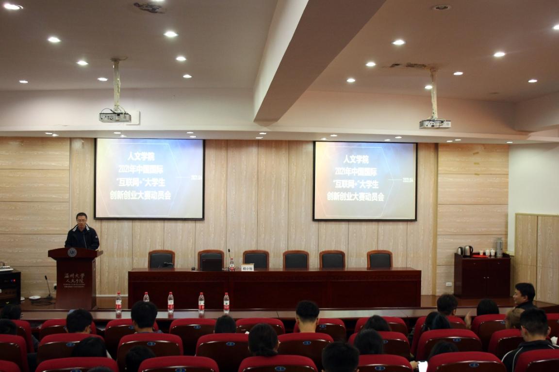 2021年4月14日下午13:00,德赢官网2021中国国际“互联网+”大学生创新创业大赛动员大会于人文楼203报告厅顺利进行,特邀校创新创业学院副院长嵇小怡老师作赛事专题报告。学工办辅导员申业磊、张丹妮、刘炳林及全院各专业学生参加。由院党委副书记魏一主持。