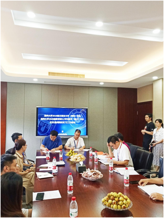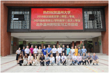 2021年9月13日,德赢官网18级汉语言文学(师范)专业、20级教育硕士/学科教学(语文)专业北京外国语大学温州附属学校实习工作启动。会议开始前,实习生在指导老师的带领下参观整洁、美丽的校园。14:00,本次见面会在二楼会议室准时召开。