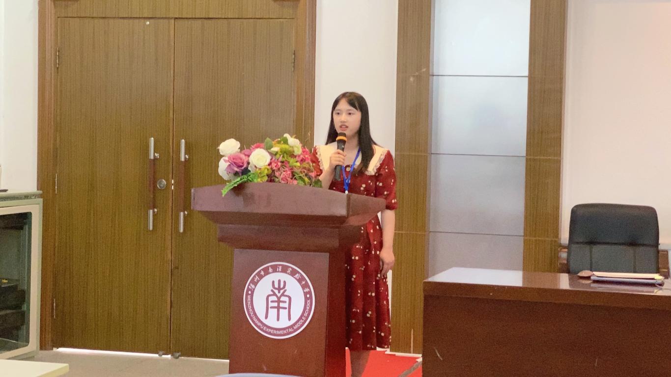 实习生代表詹翊嘉发言。她代表所有实习生表达了对德赢ac米兰官方合作vwin以及温州市南浦实验中学惠民路分校最诚挚的感谢;在实习期间将遵守学校的各项规章制度并按照人民教师的标准要求自己;对在实习期间所能学习知识以及提高水平的信心与展望。