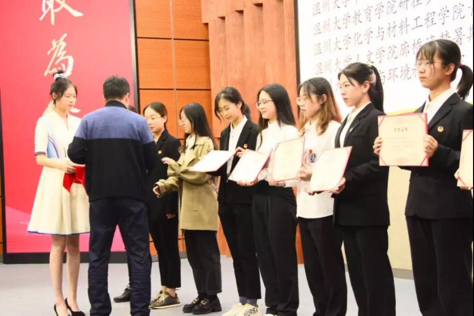 实践队队长蔡超颖同学代表德赢ac米兰官方合作vwin廊桥遗梦暑期社会实践队进行“十佳精品”实践团队的风采展示,向大家介绍了实践队八年以来如何薪火相传,更深入挖掘廊桥文化所得出的成绩、成果、成效,最终取得了第七名的好成绩。除此以外,实践队成员、指导老师也获得了“优秀通讯员”、“优秀摄影奖”、“先进个人”、“优秀指导老师”等奖项,德赢ac米兰官方合作vwin副教授、廊桥遗梦实践队领队祁刚老师,实践队队员蔡超颖、叶奕雯、俞晓倩作为实践队代表上台领奖。