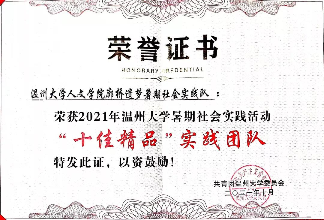 德赢官网廊桥遗梦暑期社会实践队荣获2021年德赢ac米兰官方合作vwin暑期社会实践活动“十佳精品”实践团队、2021年德赢ac米兰官方合作vwin暑期社会实践活动优秀团队。德赢ac米兰官方合作vwin团委荣获2021年德赢ac米兰官方合作vwin暑期社会实践活动优秀组织奖。