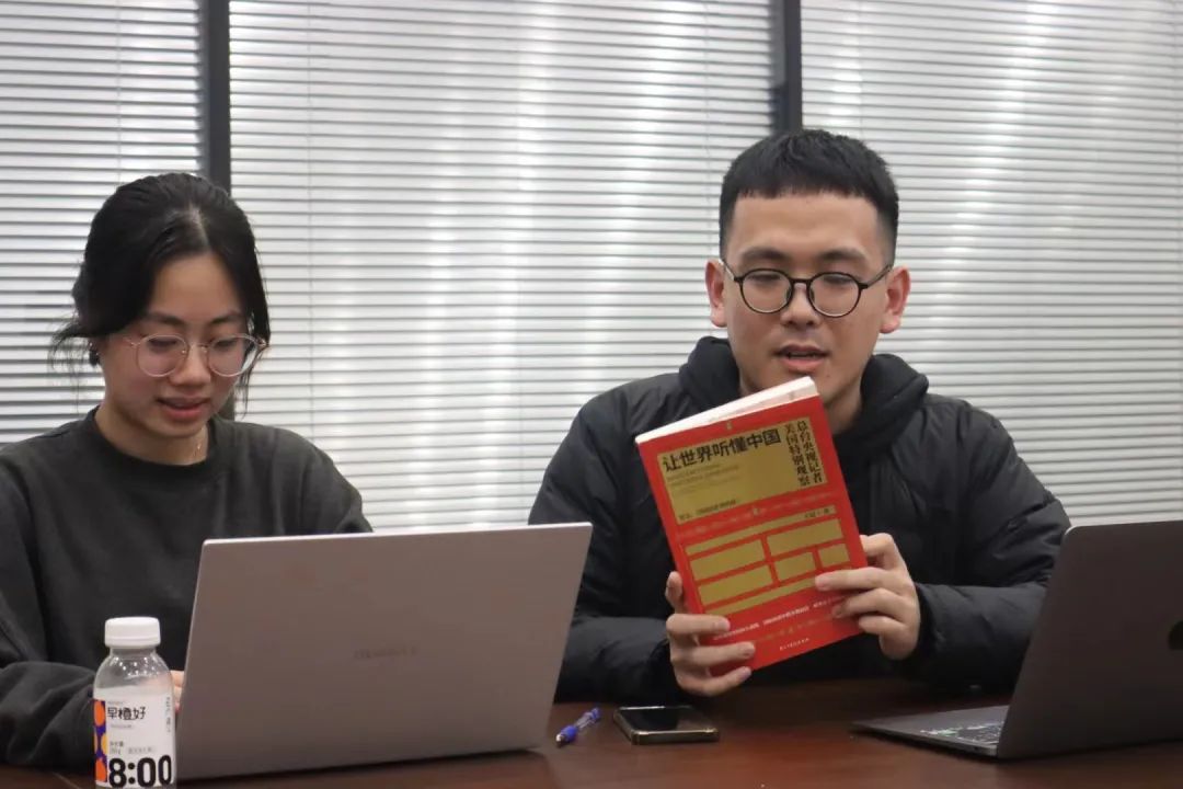本场分享会由陈奕霖同学主持,并特别邀请到了周志峰老师作为嘉宾。李露露和许林狄两位同学向大家分享了自己近期的阅读心得。李露露同学率先向大家推荐了《穆斯林的葬礼》这本长篇小说。她首先向大家介绍了这本小说所处的社会背景,接着梳理了小说主要的故事情节和发展脉络,突出讲述三代人命运的沉浮以及在不同时代有着不同内容却又交错扭结的爱情悲剧。故事融宗教信仰与现实生活,传统文化与现代文化,人性之美与价值之美于一体,折射了在漫长的历史进程中,回族既有保持其阿拉伯民族的文化渊源的一面,又有与汉文化相互渗透、相互融合的一面。许林狄同学为大家分享了《让世界听懂中国》一书,他先为大家介绍了本书的作者——一名驻美长达8年的青年记者。之后,许林狄同学选取了书中的“金句”作为切入点,向大家揭示了西方塑造和抹黑中国的手法,并阅读了文中一段作者与西方专家“南海辩论”现场的对话,让同学们身临其境,感受媒体现场的唇枪舌剑,窥见西方叙事的虚伪与偏见。